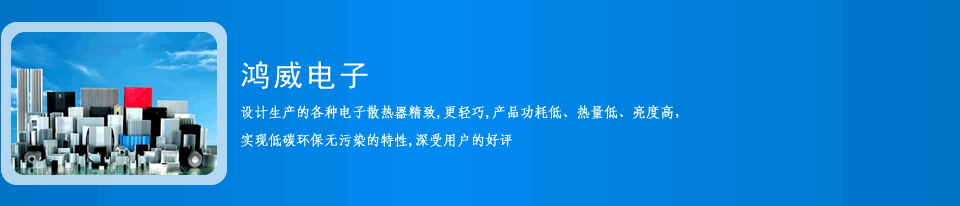鴻威電子散熱器廠擁有一批具有豐富經(jīng)驗的高素質(zhì)科技人員,擁有多年生產(chǎn)電子散熱器的豐富經(jīng)驗,型材散熱器具有設計新穎、抗蝕性、耐磨性好、節(jié)能環(huán)保、重量輕、散熱性能好的特性